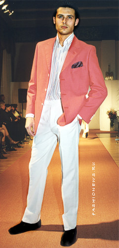 Доминирующие цвета коллекции - черный и белый. Однако к традиционным черному и белому добавим для разнообразия нежный корралл и светло-голубой лотос. Спокойные тона постепенно уступают своё место пестроте, броскости. Оранжевые пиджаки и галстуки сразу обратят на себя внимание.